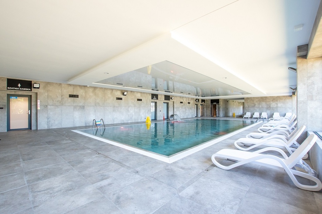 Na terenie kompleksu znajduje się strefa basenowa, sauna, stół do ping-ponga oraz wewnętrzny plac zabaw dla dzieci.