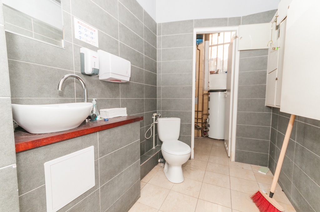 Zaplecze to kilka pomieszczeń magazynowych, biuro, WC i prysznic, aneks kuchenny dla pracowników (pomieszczenia wydzielone ściankami GK. Lokal posiada drugie tylne wyjście. Na podwórzy istnieje możliwość parkowania jednego samochodu.