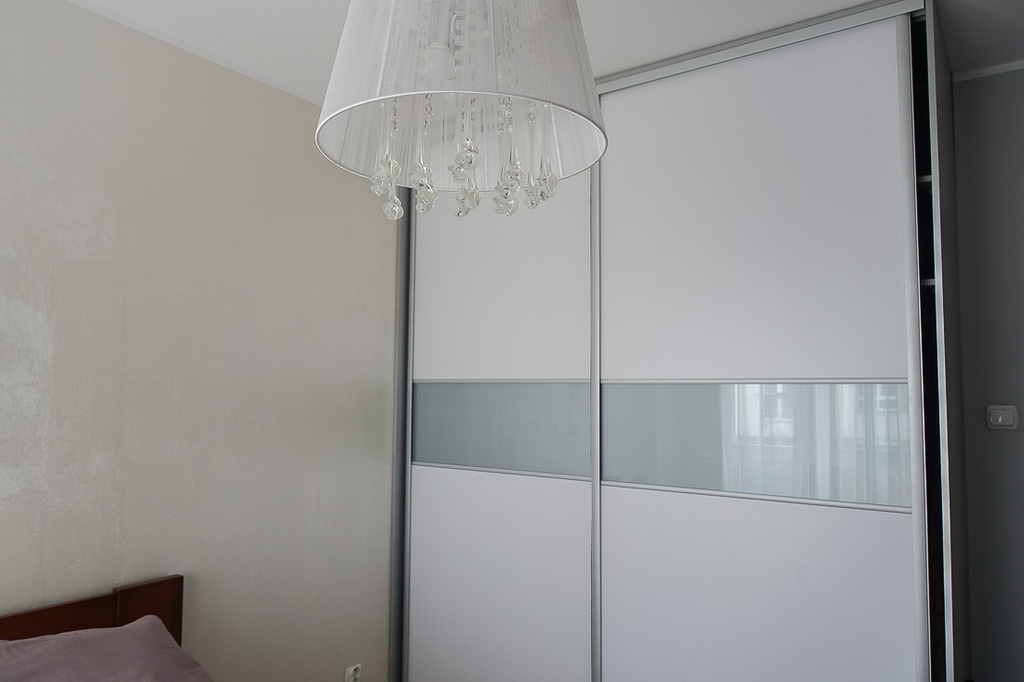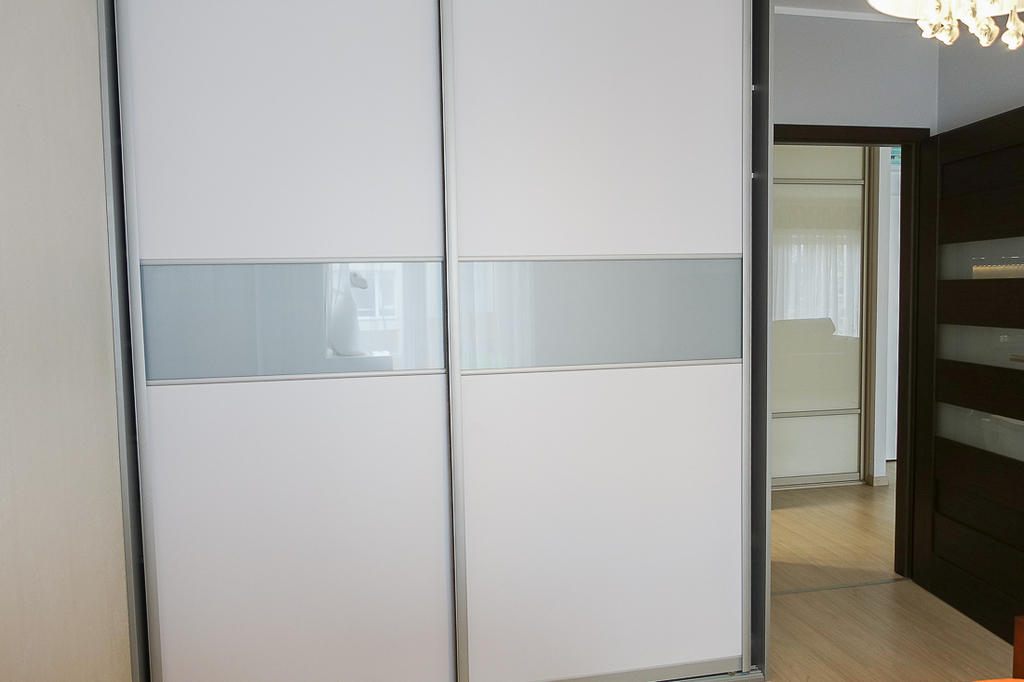 Sypialnia - ustawny pokój w regularnym kształcie kwadratu z praktyczną, pojemną zabudową szafą.