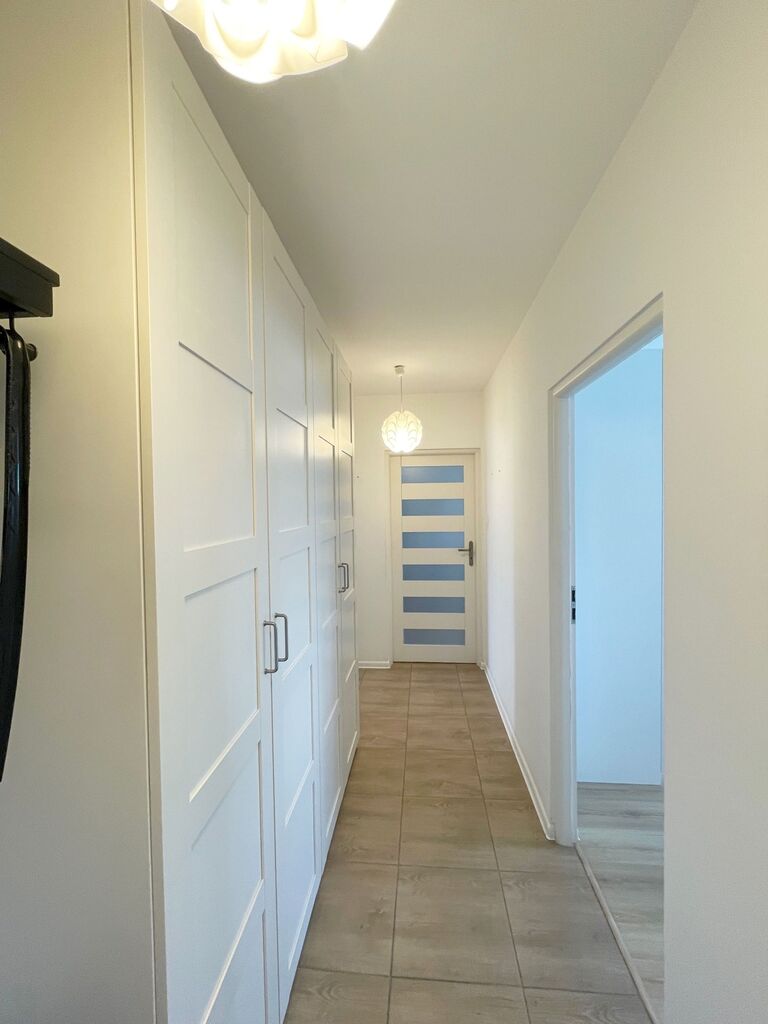 Mieszkanie po remoncie , podczas którego wymieniona został cała instalacja elektryczna. W budynku wymieniona została cała instalacja wodno-kanalizacyjna. Na podłogach w pokojach położone panele, na przedpokoju położona terakota, ściany wygładzone i pomalowane na biały kolor ( ściany do odświeżenia).