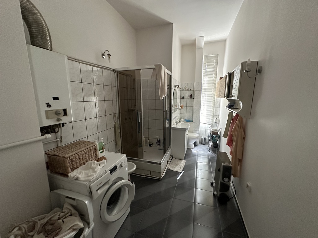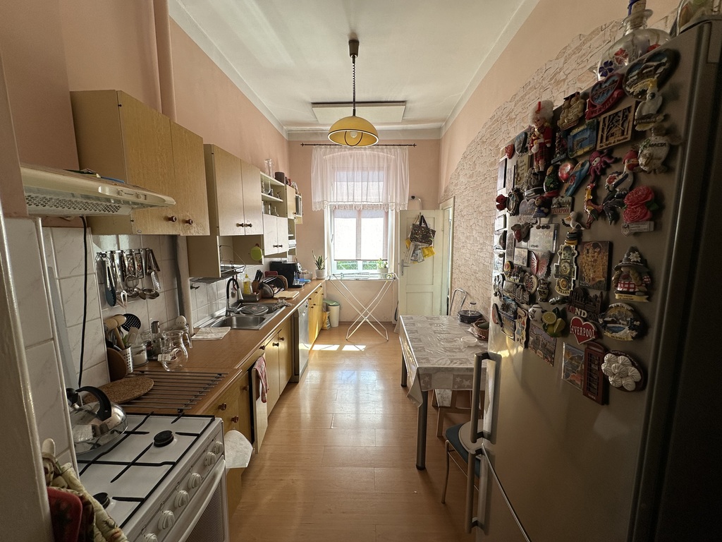 przy ul. Wielkopolskiej (okolica Placu Grunwaldzkiego). Mieszkanie składa się z ustawnych, rozkładowych pokoi: sypialnia: 20m2, pokój dzienny 24m2, łazienka 9,5m2, kuchnia 9m2, przedpokój 9m2, spiżarka 1m2. Powierzchnia mieszkania wynosi 71,81m2. Ciepła woda z pieca gazowego, ogrzewanie elektryczne z paneli. Czynsz ok 500zł. Koszt gazu szacunkowy 300zł za 2 miesiące. Brak piwnicy. Wysokość pomieszczeń ok 3,20m.