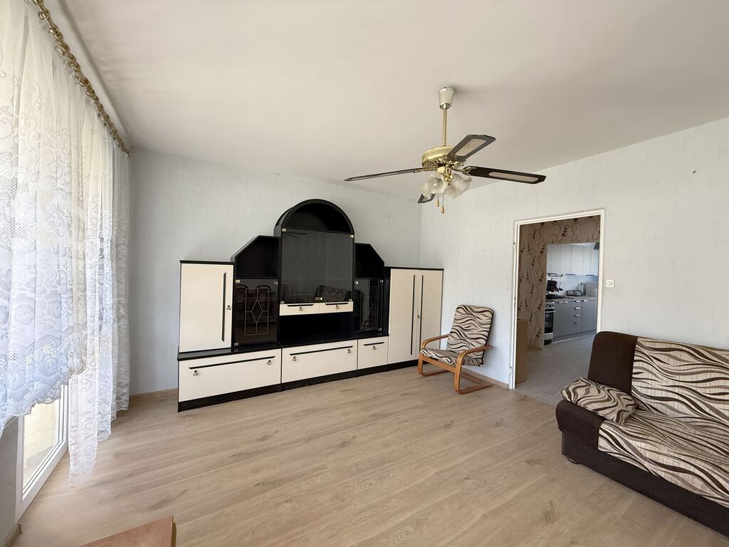 W pokojach na ścianach położone są tapety, na podłogach panele.