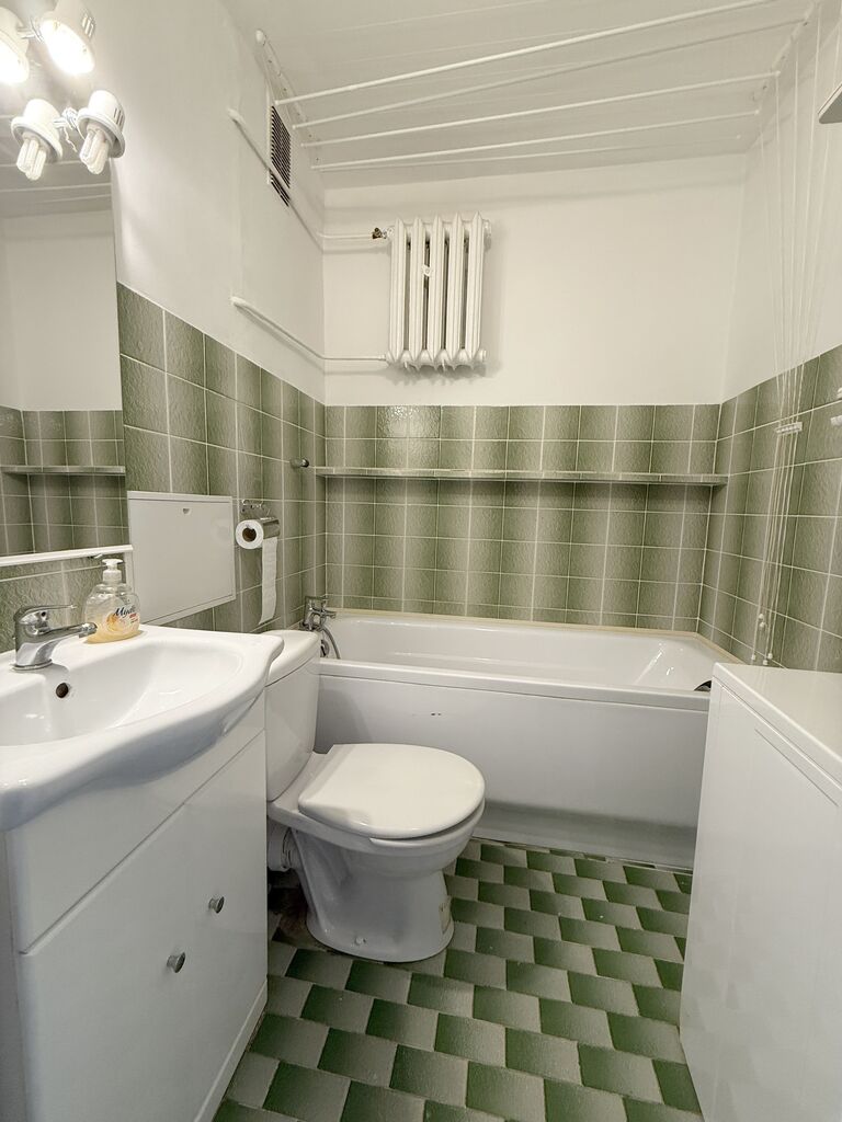 Łazienka z wc w glazurze i terakocie starszego typu.