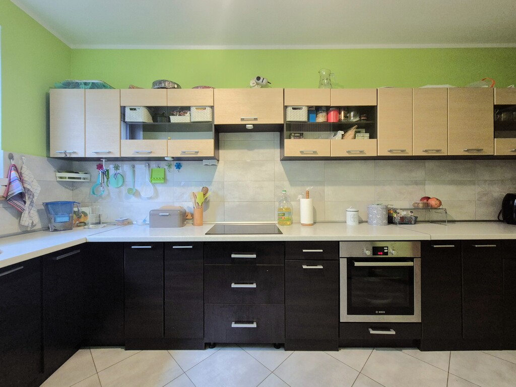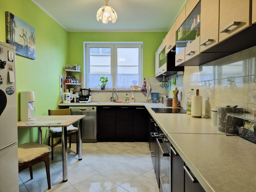 * widna, przestronna kuchnia z miejscem do spożywania posiłków z pełnym wyposażeniem: meble kuchenne w bardzo dobrym stanie oraz sprzęt AGD (zmywarka, płyta indukcyjna 4 palnikowa, piekarnik, lodówka, zamrażarka)