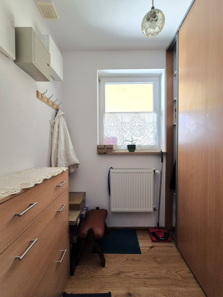 * przedpokój z funkcjonalnym korytarzykiem z szafą