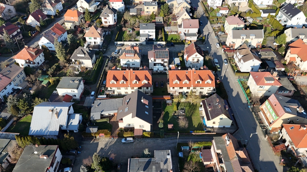 * kameralna zabudowa szeregowa, tzw. czworak (w budynku mamy 2 klatki po 2 mieszkania w każdej)