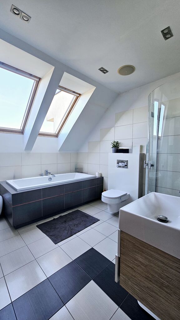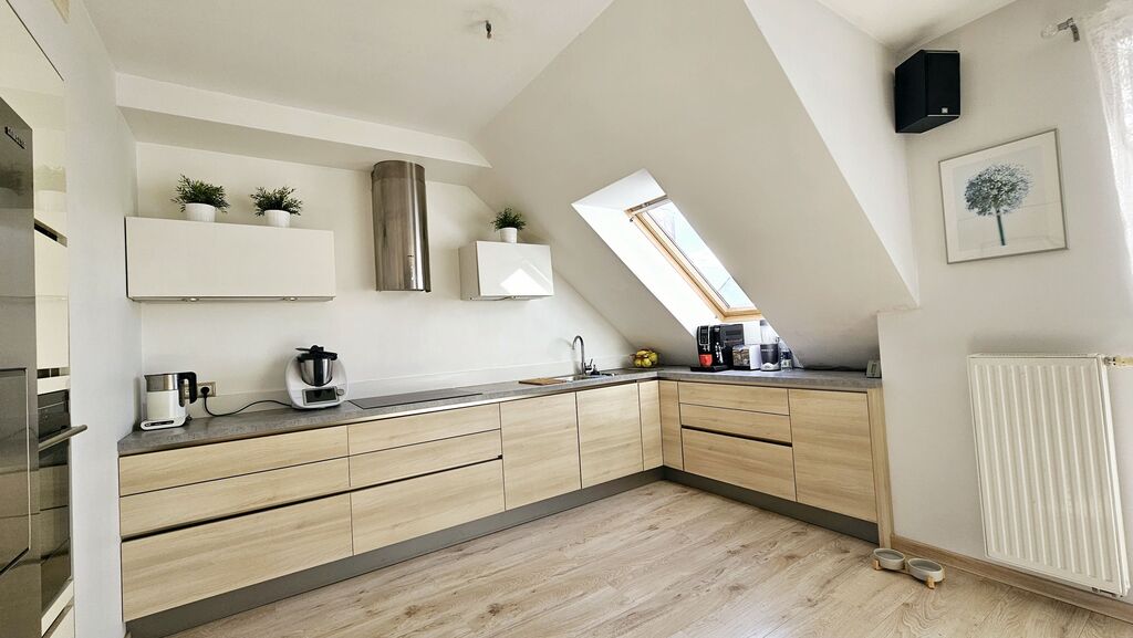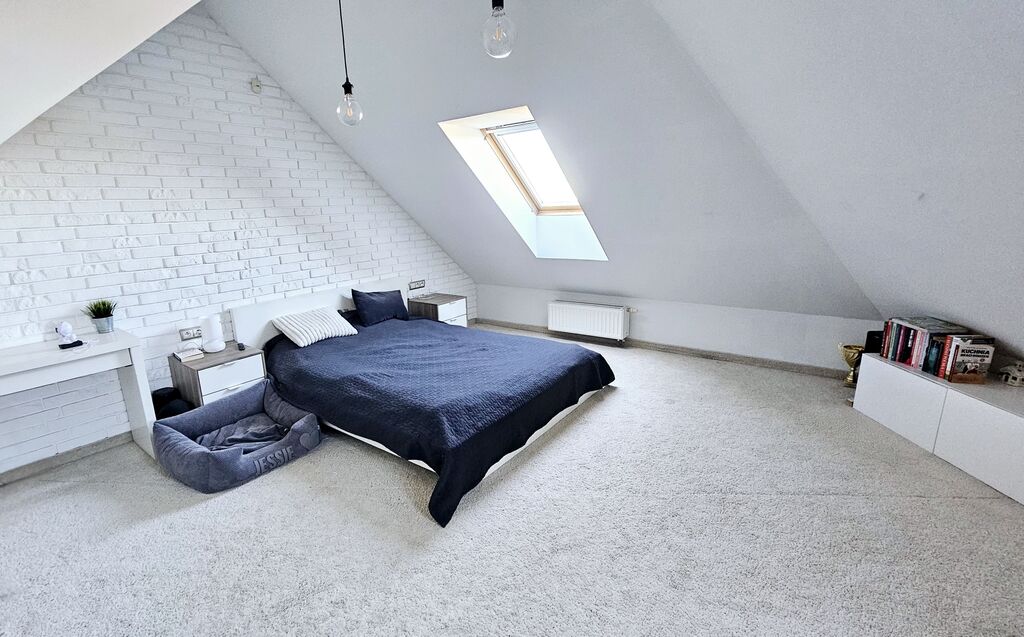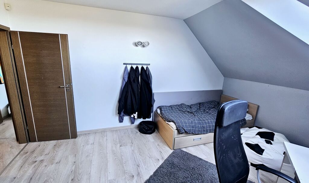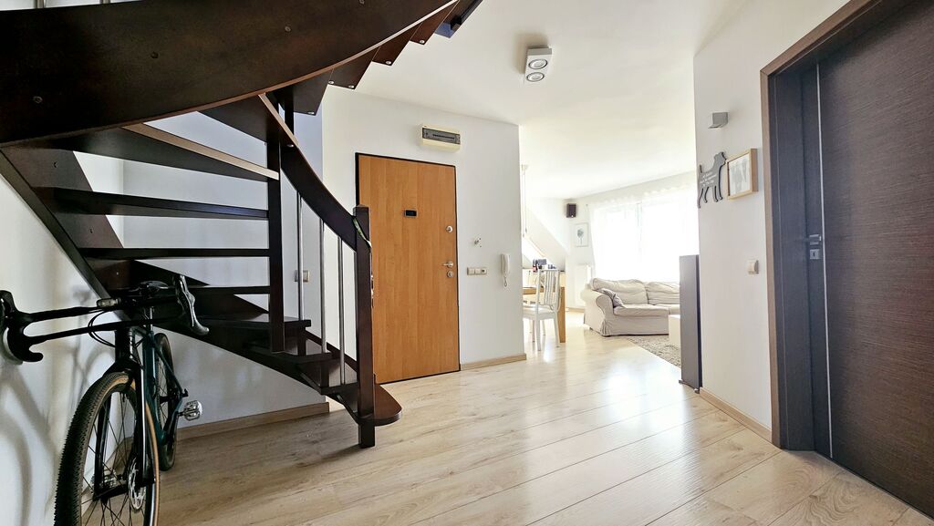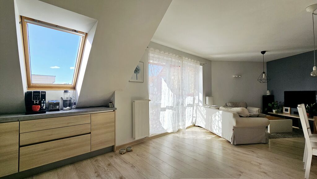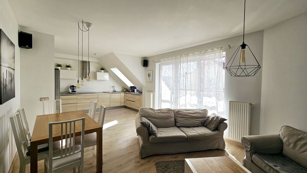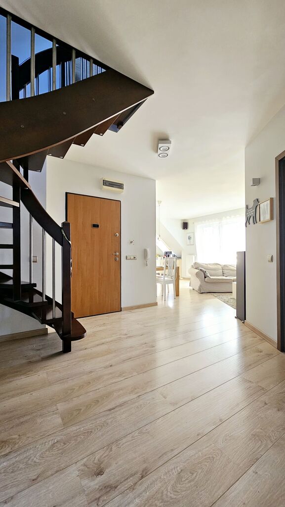 Przedmiotem oferty jest przestronne mieszkanie dwupoziomowe, położone na 3 piętrze w niskim budynku bez windy, na ul. Gwarnej z 2009 r. Stan budynku idealny. Na I poziomie (p.u.78,5m2) salon z wyjściem na duży balkon, kuchnia w zabudowie kuchennej, ze sprzętem AGD, otwarta na salon. Duży przedpokój, spora oddzielna garderoba, dwie sypialnie i duża łazienka z oknem. Na drugi poziom (pomieszczenie przynależne -poddasze 14,4m2 p.u.), prowadzą drewniane schody. Tu znajduje się otwarta przestrzeń (aktualnie sypialnia), z zabudową pod skosami. Mieszkanie bardzo słoneczne, z pięknym widokiem. Koszty miesięczne to czynsz 700 zł plus c.o. i c.w z SEC plus prąd. Termin wydania max sierpień 2025 r. Do mieszkania przynależy piwnica 3,2m2. Istnieje możliwość wynajęcia garażu obok budynku. Polecam z uwagi na cichą okolicę, bliskość Puszczy Bukowej, szkoły i przystanków. Doskonałe miejsce dla rodzin z dziećmi. Cena podlega negocjacji.