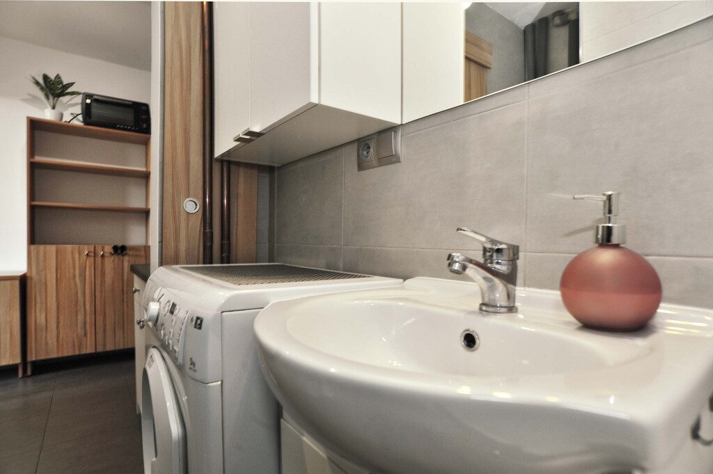 OPIS MIESZKANIA: Do wynajęcia kawalerka znajdująca się na 3 piętrze, 9 kondygnacyjnego bloku. Jego całkowita powierzchnia wynosi 22,7 m2, mimo to mieszkanie jest przemyślanie urządzone. W kawalerce znajduje się przedpokój, kuchnia, łazienka wraz z WC oraz pokój. W przedpokoju stoją szafki, do których bez problemu można schować kurtki, buty. Obok wejścia do mieszkania znajduje się kuchnia, która mimo małych rozmiarów, jest wyposażona we wszystko co niezbędne w danym pomieszczeniu: piekarnik, kuchenka gazowa, lodówka, szafki oraz blat roboczy. Zaraz obok jest ulokowana łazienka w której znajduje się wanna, wc, szafki, pralka oraz lustro. Ostatnim pomieszczeniem jest duży pokój, w którym jest mnóstwo szafek, półek, kanapa, idealne miejsce do powieszenia telewizora oraz stół z dwoma fotelami obrotowymi. W tym pomieszczeniu jest duże okno dzięki czemu pokój jest widny.