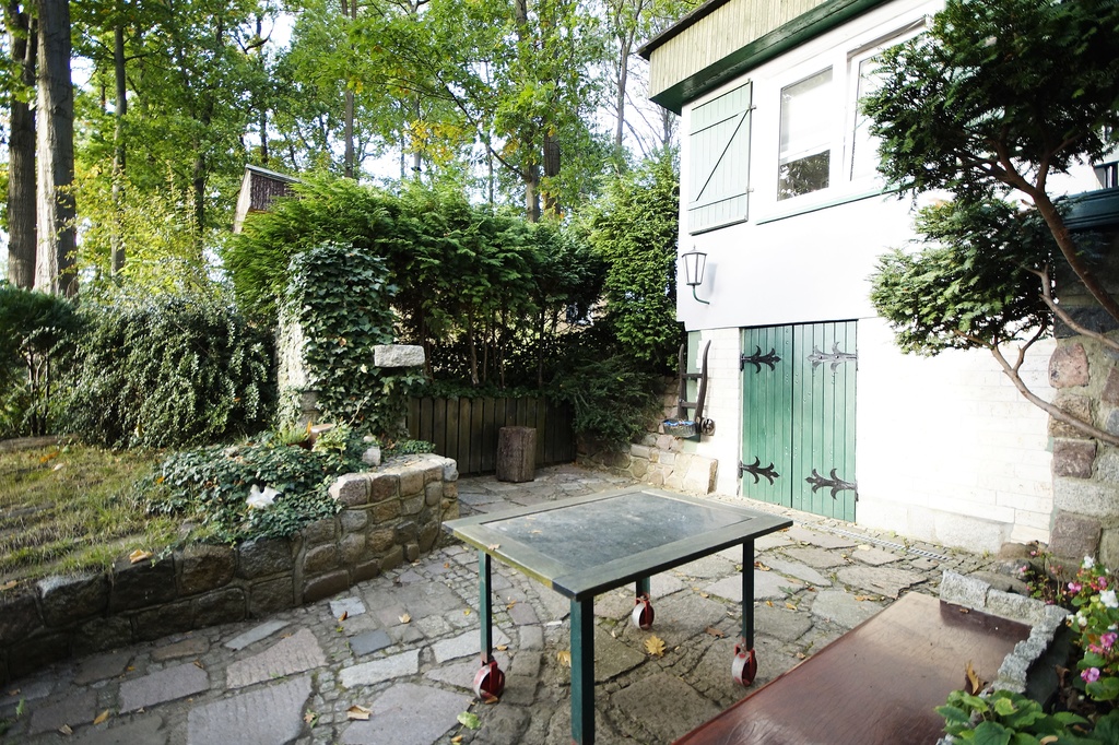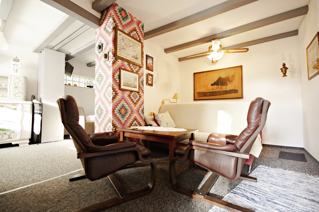 Dom składa się z 2 pokoi, kuchni, jadalni, łazienki, garażu na narzędzia.