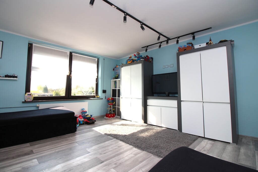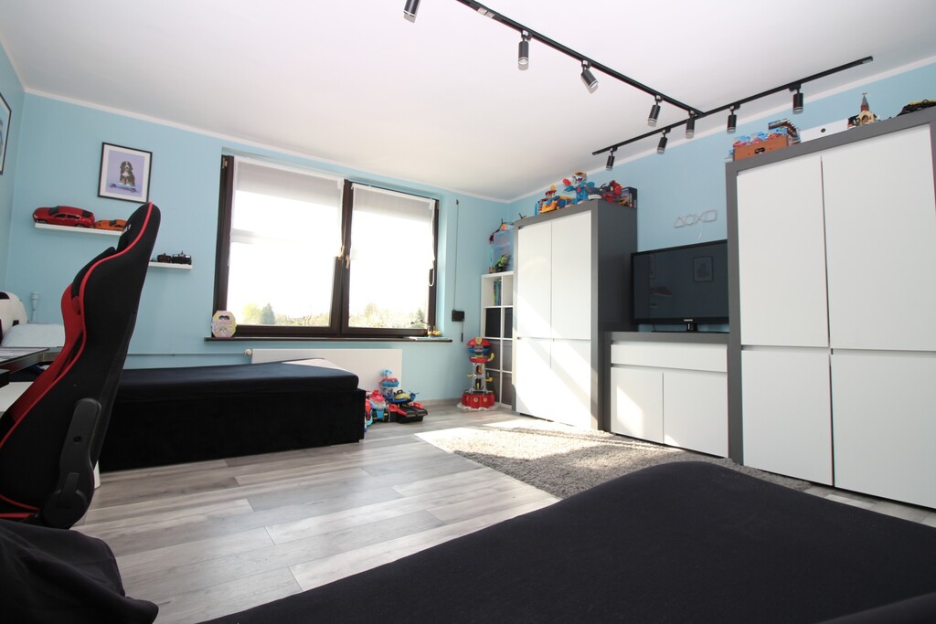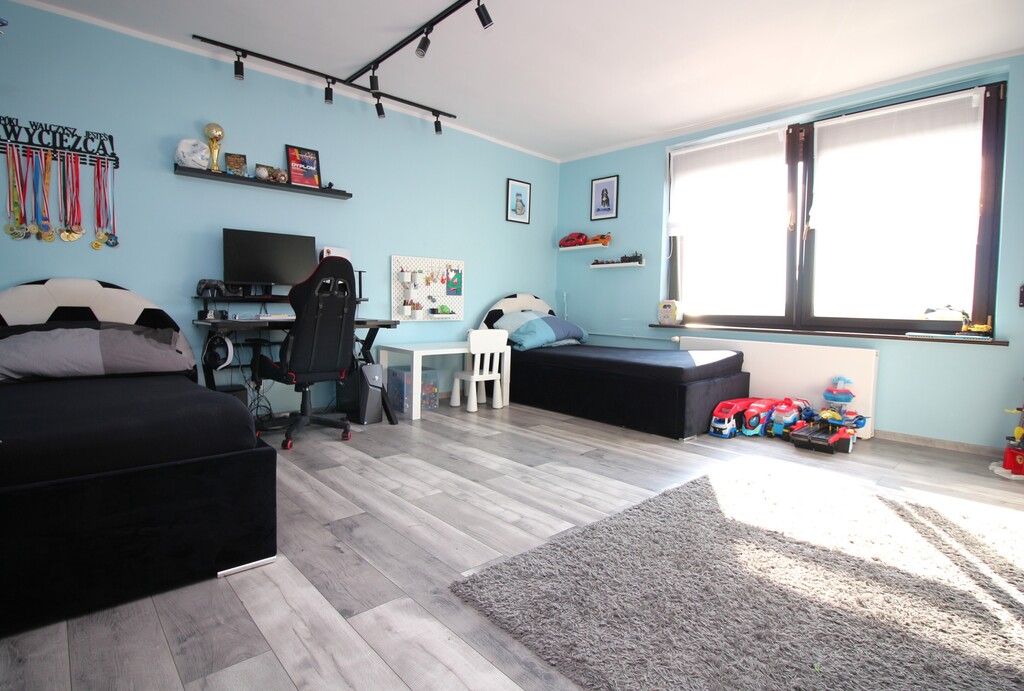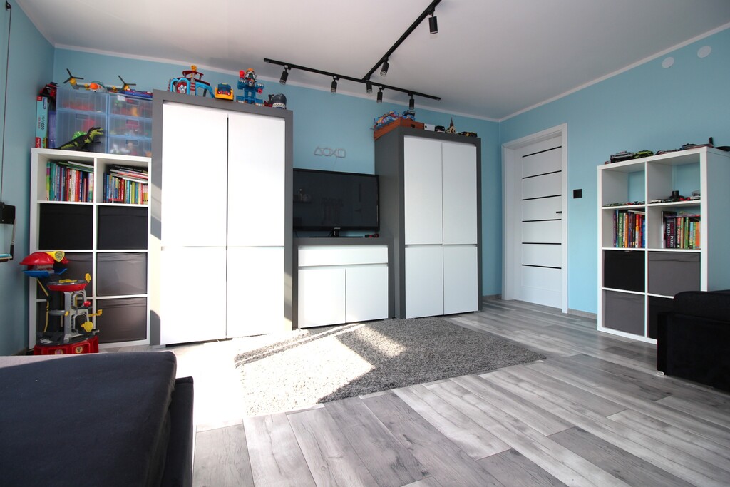 - Dwa przestronne, niezależne pokoje, jeden to pokój dziecięcy, drugi przeznaczony na sypialnie.