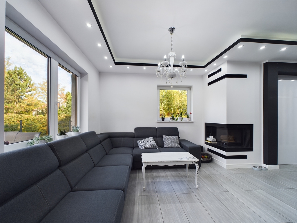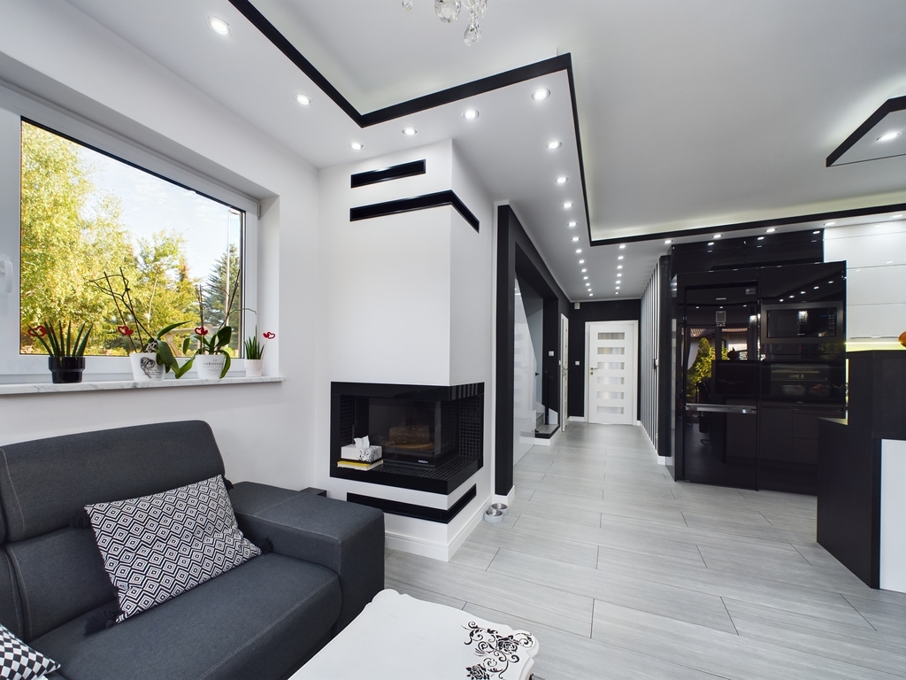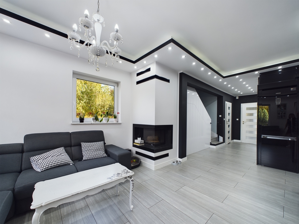 - przestronny salon z kominkiem oraz wyjściem na taras i ogród