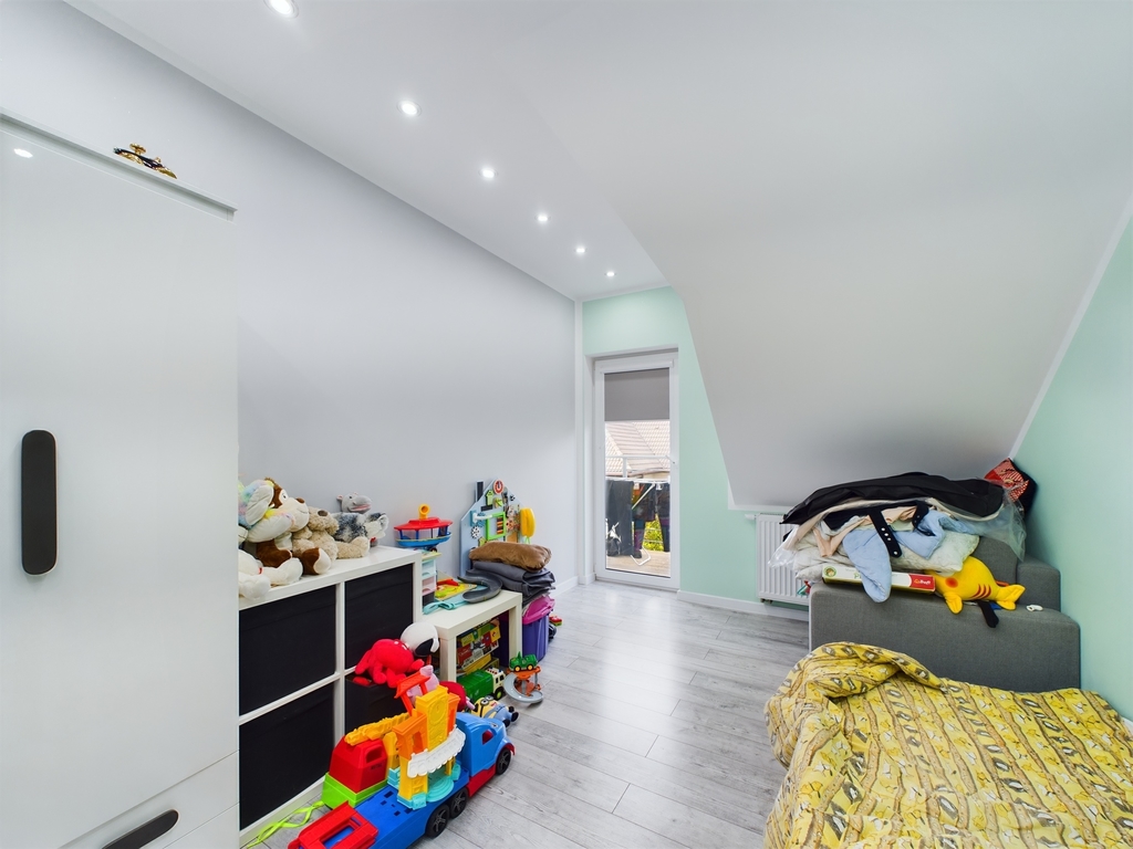 Wyjście na taras i ogródek od strony południowej. Plac zabaw od strony wschodniej.
