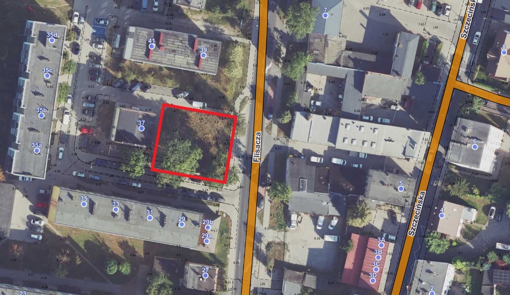 Nieruchomość gruntowa położona w centrum Gryfina. W pobliżu znajdują się sklepy, stacja paliw, przystanek komunikacji miejskiej oraz osiedle mieszkaniowe.