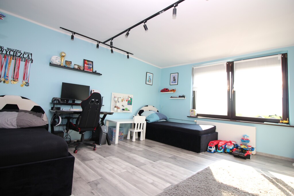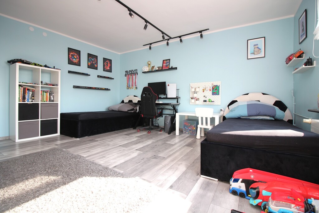 - Dwa przestronne, niezależne pokoje, jeden to pokój dziecięcy, drugi przeznaczony na sypialnie.