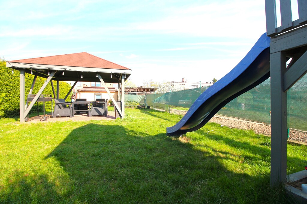 Działka o powierzchni ok 180m2 z drewnianą altaną i domkiem zabaw dla dzieci