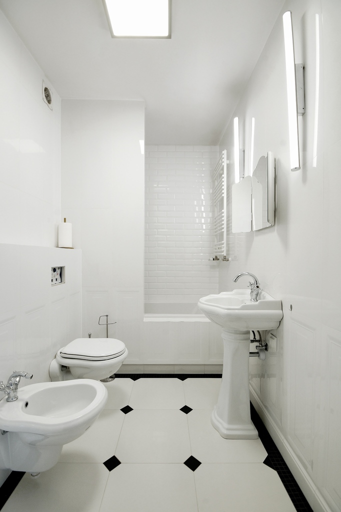 - Łazienka: Elegancko wykończona kaflami według projektu Macieja Zienia, wyposażona w wysokiej klasy armaturę podtynkową, wannę z prysznicem Kerasan, WC, bidet oraz umywalkę