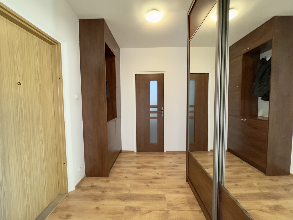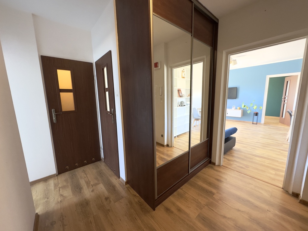 • przedpokój z dużą szafą w zabudowie.