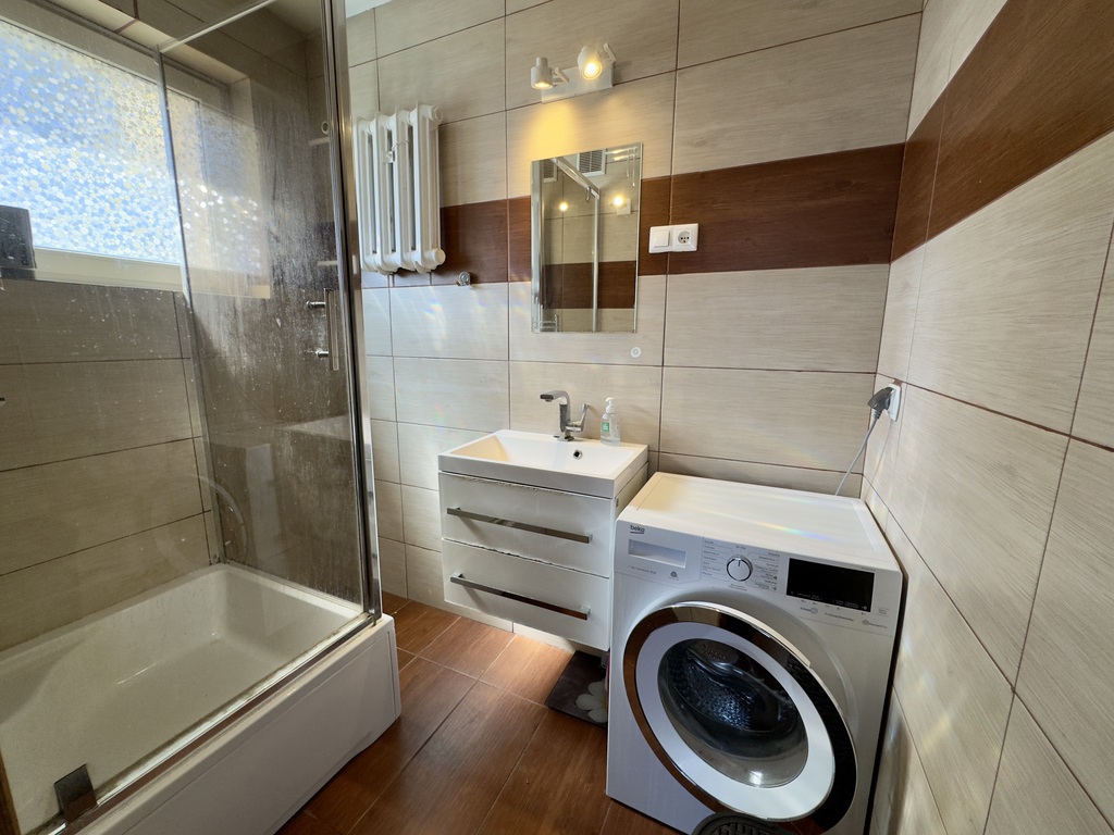 Ogrzewanie i ciepła woda pochodzą z sieci miejskiej. Okna PCV. Opłaty do zarządcy wynoszą ok. 680zł przy 1 osobie.