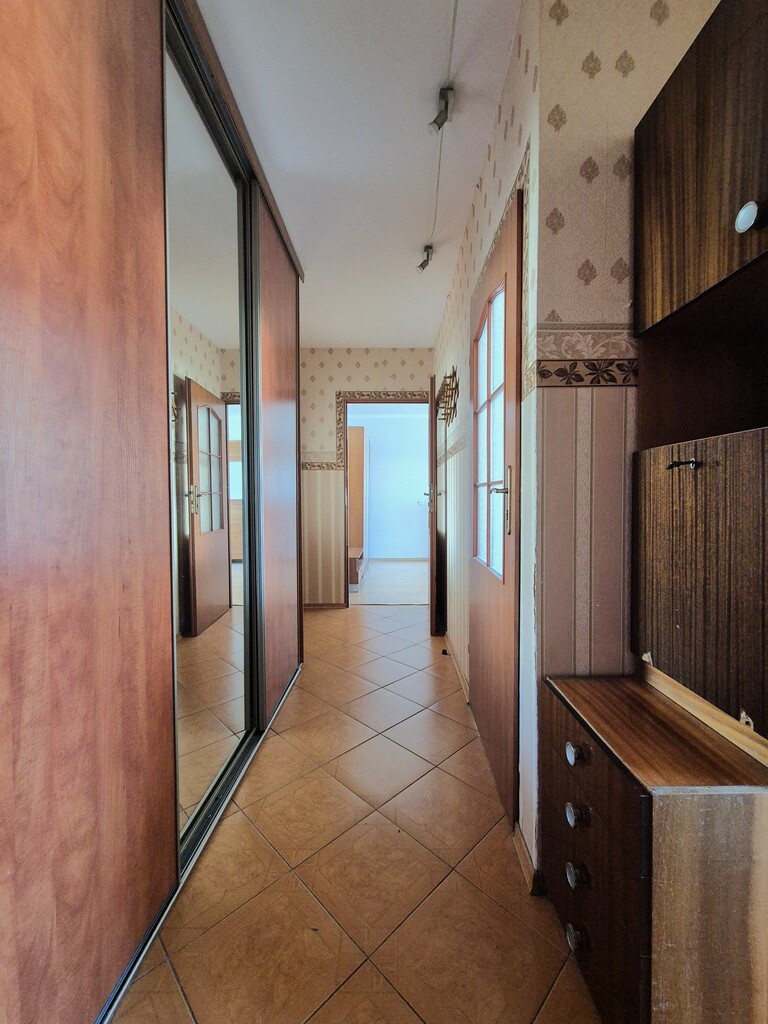 * mieszkanie z typowym dla tutejszych bloków rozkładem – długi korytarz, z którego wchodzimy niezależnie do wszystkich pomieszczeń