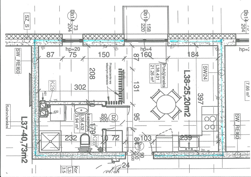 - łazienka z WC ( 3,94 m2 ),