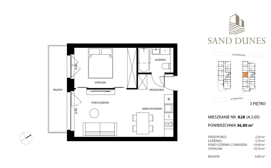 Apartament o powierzchni 36,8 m2 w budynku położonym nad morzem w pierwszej linii w bezpośrednim sąsiedztwie zejścia na plażę. Pokój dzienny z aneksem kuchennym 19,9 m2, sypialnia 10,7 m2. Przedpokój 2,5 m2. Łazienka 3,7 m2. Balkon 6,8 m2. III piętro. Okna od północnego zachodu. Sand Dunes w Dziwnowie to kameralna inwestycja obejmująca dwa budynki o wyjątkowej architekturze położone w idealnej lokalizacji, w pierwszej linii zabudowy, z widokiem na Morze Bałtyckie z jednej strony oraz rzekę Dziwną i Zatokę Wrzosowską z drugiej. Inwestycja oddalona jest od morza jedynie o 60 m, a zejście na plażę bezpośrednio z terenu inwestycji spełni oczekiwania najbardziej wymagających Klientów. Możliwość wykończenia na życzenie klientów i zarządzanie najmem. W garażu podziemnym stacje do ładowania samochodów elektrycznych. Zjazd do garażu windą. Cena miejsca postojowego w garażu podziemnym 80.000 zł.