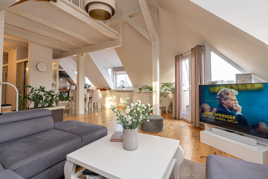 Nowe okna dachowe (Velux Premium, 2024), drzwi antywłamaniowe nowe, w mieszkaniu jest internet, telewizja kablowa, domofon.