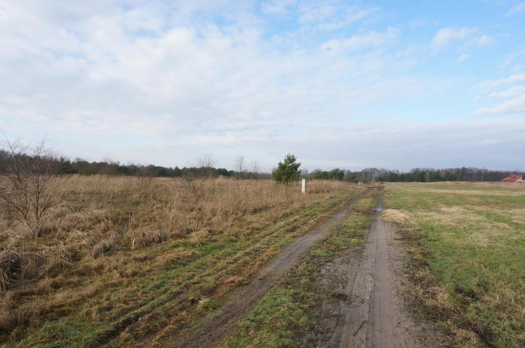 Dojazd do działki poprzez szeroką drogę wewnętrzną utwardzoną.