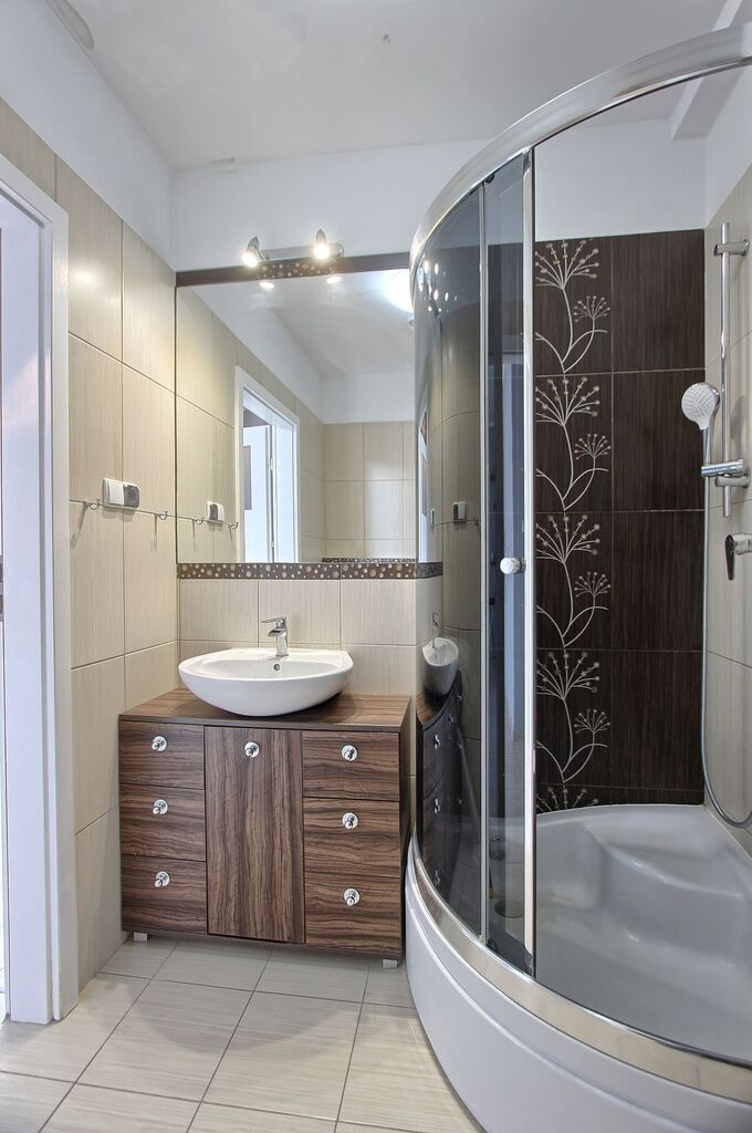 - łazienka - z kabiną prysznicową i pralką.