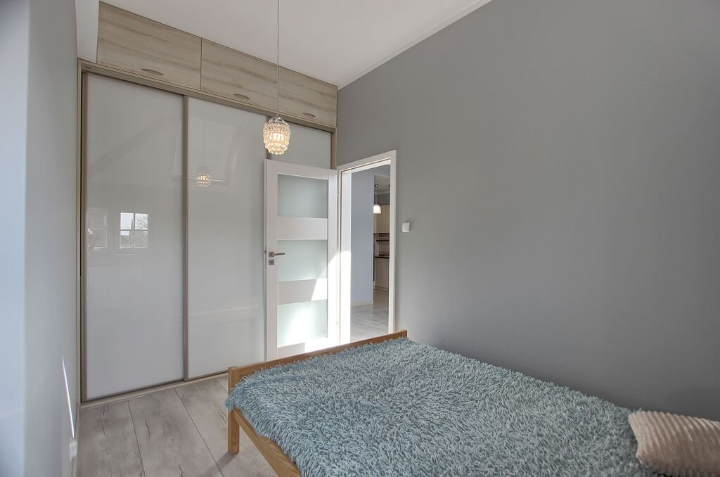 - sypialnia - z łóżkiem i szafą w zabudowie