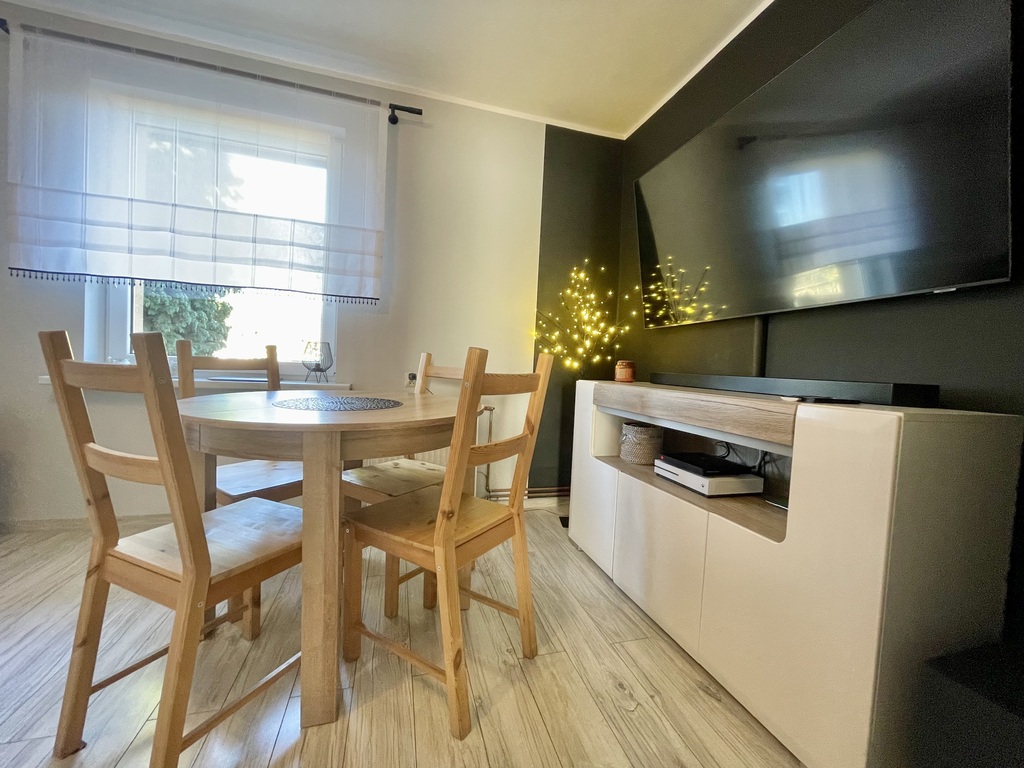 Mieszkanie znajduje się na pierwszym piętrze w spokojnej, zielonej okolicy z bliskością do przystanku autobusowego linii 109 oraz 103.