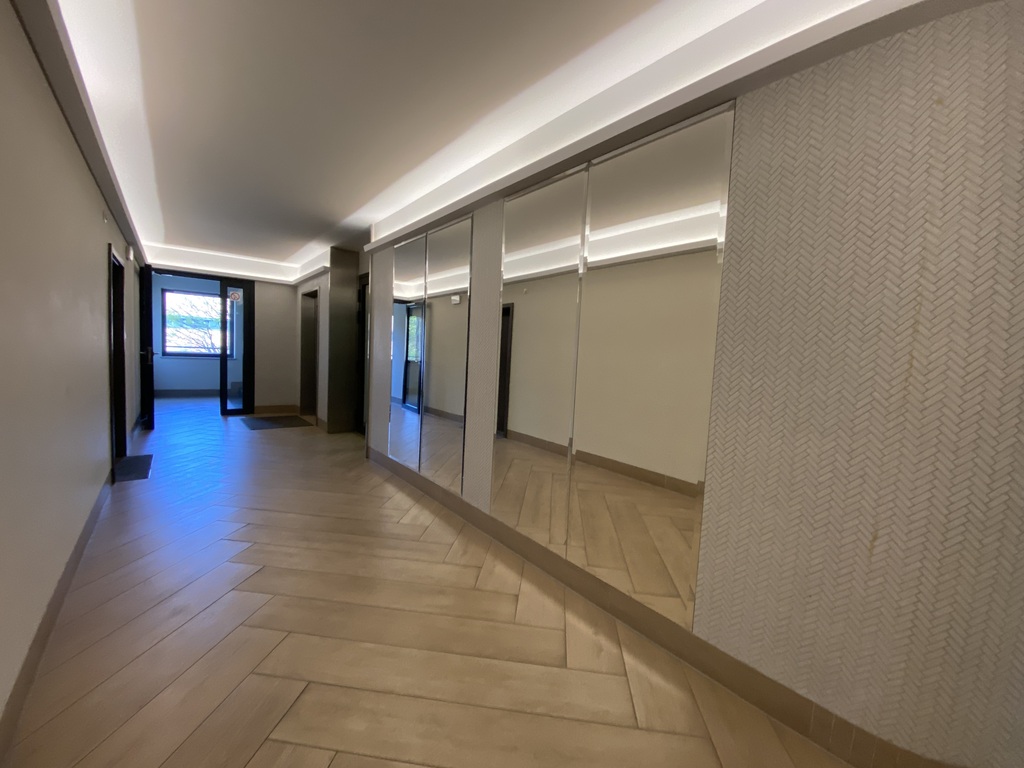 Wewnętrzny korytarz z trzema mieszkaniami oddzielony drzwiami