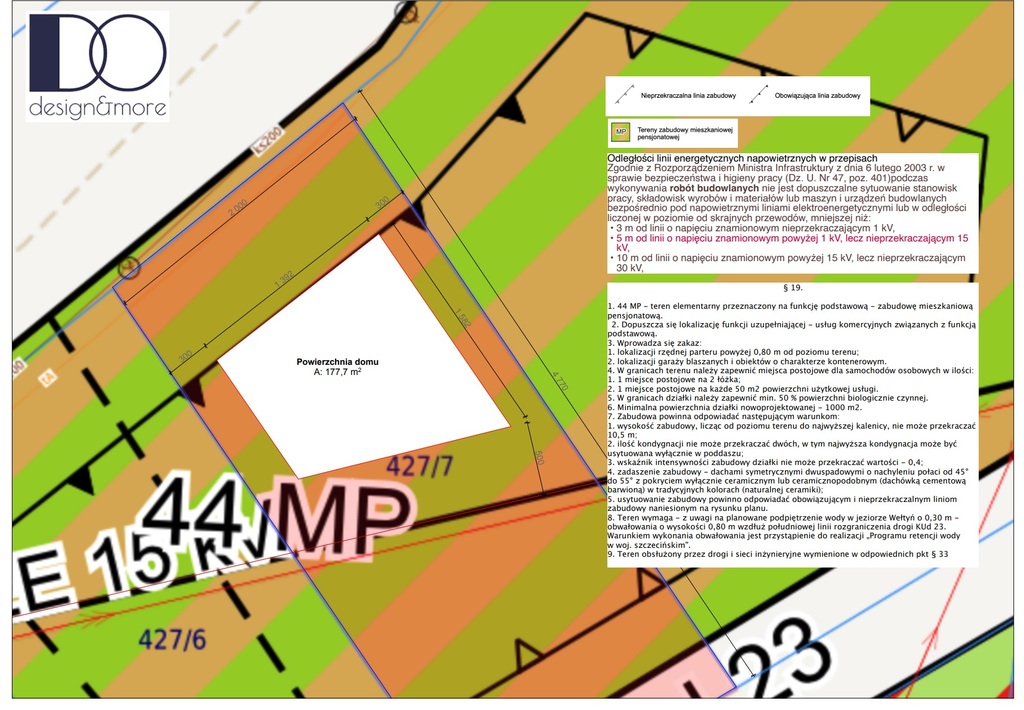 Przeznaczenie działki oznaczona symbolem "44 MP" na funkcję podstawową - pod zabudowę mieszkaniową pensjonatową. Dopuszcza się lokalizację funkcji uzupełniającej - usług komercyjnych związanych z funkcją podstawową.