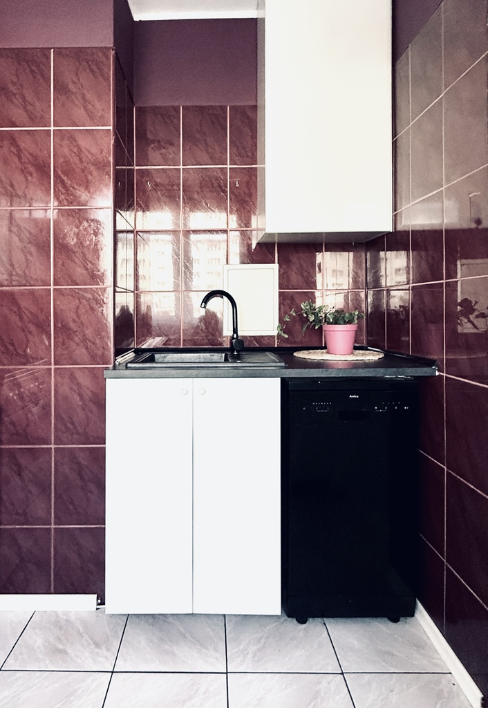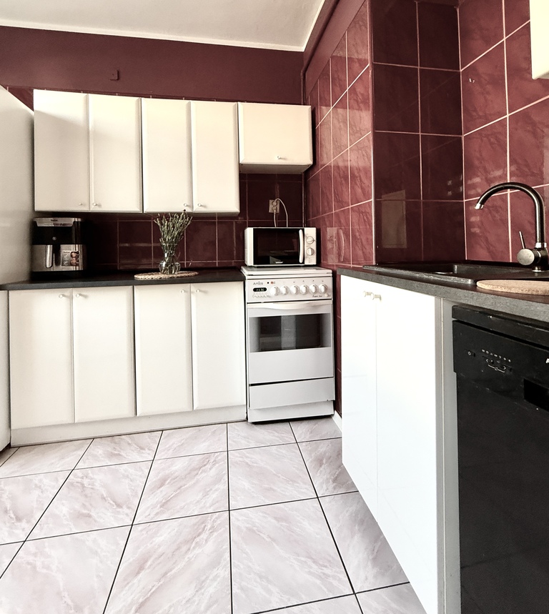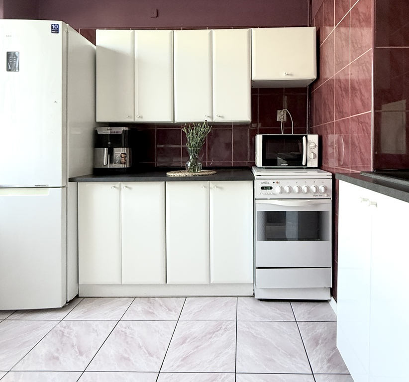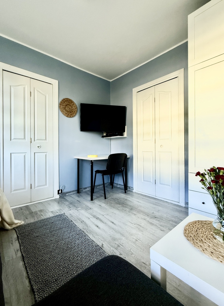 Jest to duża kawalerka, z wydzielonym pokojem sypialnianym i oddzielną jasną kuchnią.