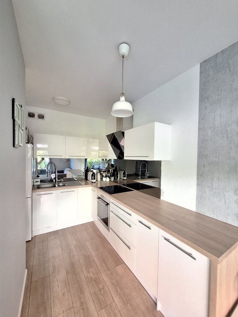 Mieszkanie jest w pełni umeblowane i wyposażone w sprzęt AGD i RTV (lodówka, piekarnik, płyta grzewcza, zmywarka, pralka, telewizor), gotowe do zamieszkania bez dodatkowych nakładów. Ogrzewanie miejskie zapewnia komfort cieplny i niskie koszty utrzymania (ok 400zł).