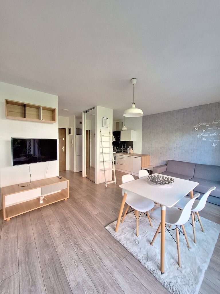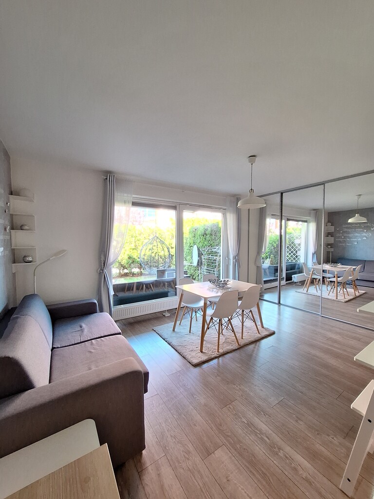 Przedstawiamy Państwu przestronną kawalerkę 32,48m2 z nowoczesnym wykończeniem oraz ogródkiem.