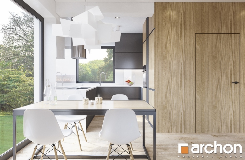 - Salon z jadalnią, aneksem kuchennym oraz bezpośrednim wyjściem na taras 28,81 m2
