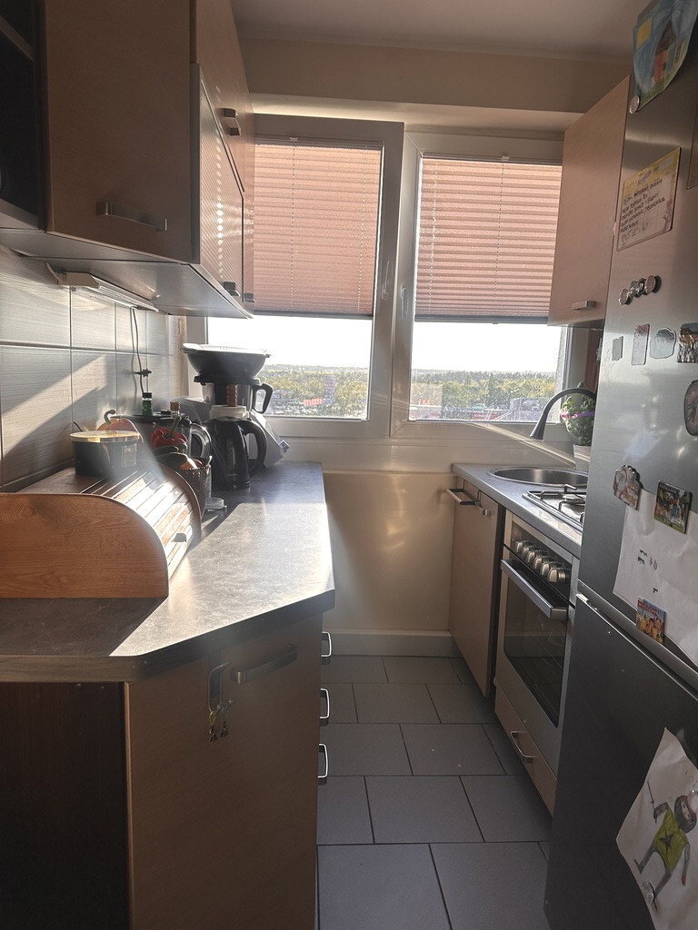 Mieszkanie znajduje się przy ul. Xawerego Dunikowskiego, na 9. piętrze 10-piętrowego budynku z lat 70.