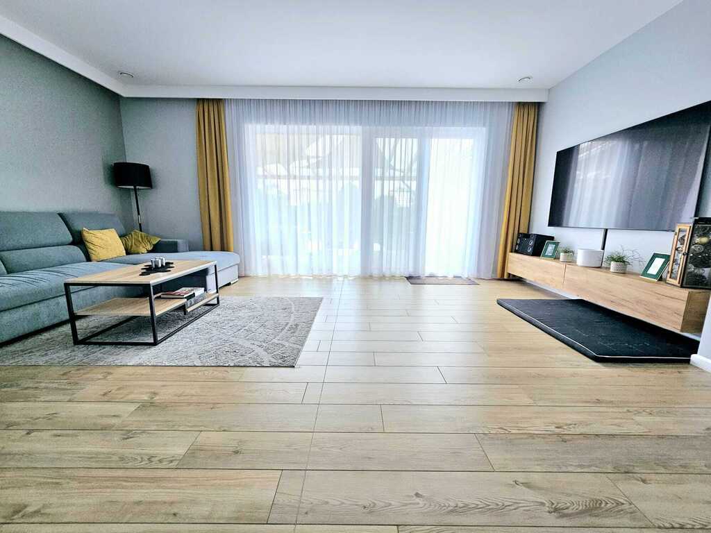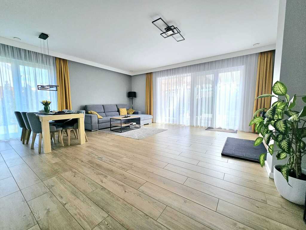 Oferujemy do sprzedaży ekonomiczny, atrakcyjny dom w zabudowie bliźniaczej, z garażem w bryle budynku, wybudowany w 2019 roku. Nieruchomość zlokalizowana w zaciszu dzielnic Wielgowo-Sławociesze-Zdunowo, na bardzo spokojnym osiedlu, w sąsiedztwie jedynie zabudowa jednorodzinna, dookoła tereny zielone. Dom położony na działce o łącznym metrażu 792 m2, o powierzchni mieszkalnej 131.92 m2. Na parterze budynku znajduje się otwarta kuchnia - 11,2 m2 (z dodatkową spiżarnią - 4,2 m2) połączona z jadalnią oraz obszernym salonem - 36,7 m2 (z którego wychodzi się na zaaranżowany taras - 25 m2 i ogród - ponad 300 m2), trzy sypialnie (dwie mniejsze sypialnie po 13 m2 oraz jedna główna sypialnia z garderobą - 18 m2), dwie łazienki z WC (mniejsza - 3,6 m2, oraz główna - 8,3 m2), pomieszczenie gospodarcze z pralnią (7,20 m2), wiatrołap - 6,6 m2 oraz korytarz - 10,2 m2. W budynku znajduje się poddasze do samodzielnej aranżacji z wyprowadzonymi instalacjami oraz oknem balkonowym - całość ok. 60 m2. Do dyspozycji mieszkańców pozostaje również jednostanowiskowy garaż - 21,7 m2 (w bryle budynku). Ciepła woda oraz ogrzewanie podłogowe, zainstalowane na całej powierzchni domu - z nowoczesnego pieca gazowego. W cenie nieruchomości pozostają wszystkie zabudowy stałe wraz ze sprzętami RTV/AGD, reszta umeblowania do indywidualnego ustalenia. Nieruchomość zaprojektowano w bardzo funkcjonalny i przemyślany sposób, mający zapewniać jego mieszkańcom komfortowe użytkowanie. Na wyposażeniu okna PCV - 3 szybowe, drzwi drewniane, antywłamaniowe, rolety zewnętrzne antywłamaniowe oraz moskitiery. Dom bardzo ekonomiczny w utrzymaniu i doinwestowany (m.in. w ostatnim czasie wymieniono ma nowe - rekuperator, zasobnik wody oraz napęd bramy garażowej.) Przygotowana instalacja pod montaż alarmu. Pięknie zaaranżowany i zadaszony taras oraz ogród z licznymi nasadzeniami. Nieruchomość odseparowana, od frontu ręcznie wykonanym ogrodzeniem z bramą otwieraną na pilota. Jednym z największych atrybutów nieruchomości, cicha i spokojna okolica, zapewniająca spokój i relaks jej mieszkańcom, a w sąsiedztwie jedynie zabudowa jednorodzinna i bliźniacza. Idealne miejsce dla osób ceniących prywatność. Bezproblemowe sąsiedztwo. W pobliżu market, sklepy osiedlowe, punkty gastronomiczne, szkoła podstawowa, apteka, stacja SKM Szczecin Zdunowo i wiele innych miejskich udogodnień.