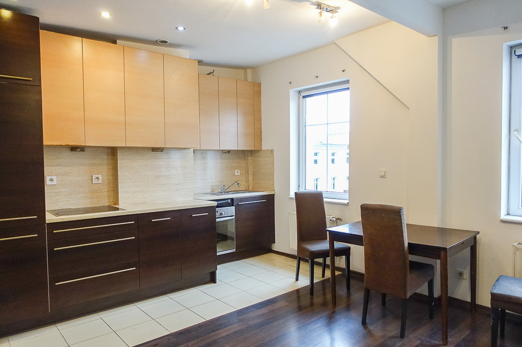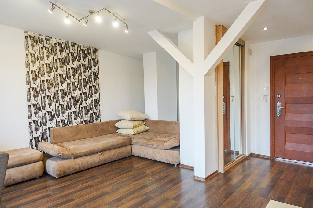 Na sprzedaż nowocześnie zaaranżowane mieszkanie na IV piętrze ładnej kamienicy z wyremontowaną klatką schodową. Adaptacja bez skosów wykonana w 2012 roku. Wysokość mieszkania 2,65 m. Dobra izolacja powoduje, że mieszkanie latem się nie nagrzewa, a zimą nie przemarza. Powierzchnia 49,26 m2. Pokój z aneksem kuchennym otwarty na hol wejściowy o powierzchni łącznie 20 m2. W kuchni nowoczesna zabudowa, piekarnik, płyta ceramiczna, zmywarka, zlewozmywak i lodówka z zamrażarką w zabudowie. Sypialnia 14,5 m2. Łazienka 5,8 m2 w nowoczesnej glazurze i terakocie z kabiną prysznicową, umywalką, pralką, WC razem. Drzwi wejściowe antywłamaniowe, na ścianach gładź, nowe instalacje grzewcze (ogrzewanie gazowe), instalacja elektryczna w miedzi, nowe instalacje wodno - kanalizacyjne. Mieszkanie zadbane. W przedpokoju szafa w zabudowie.