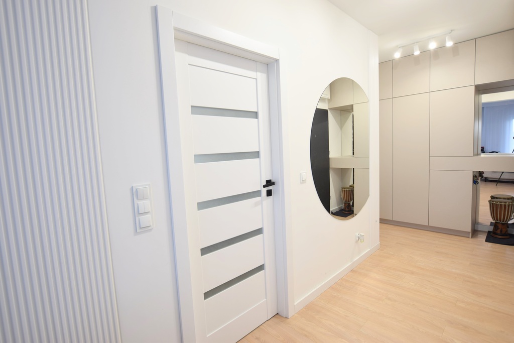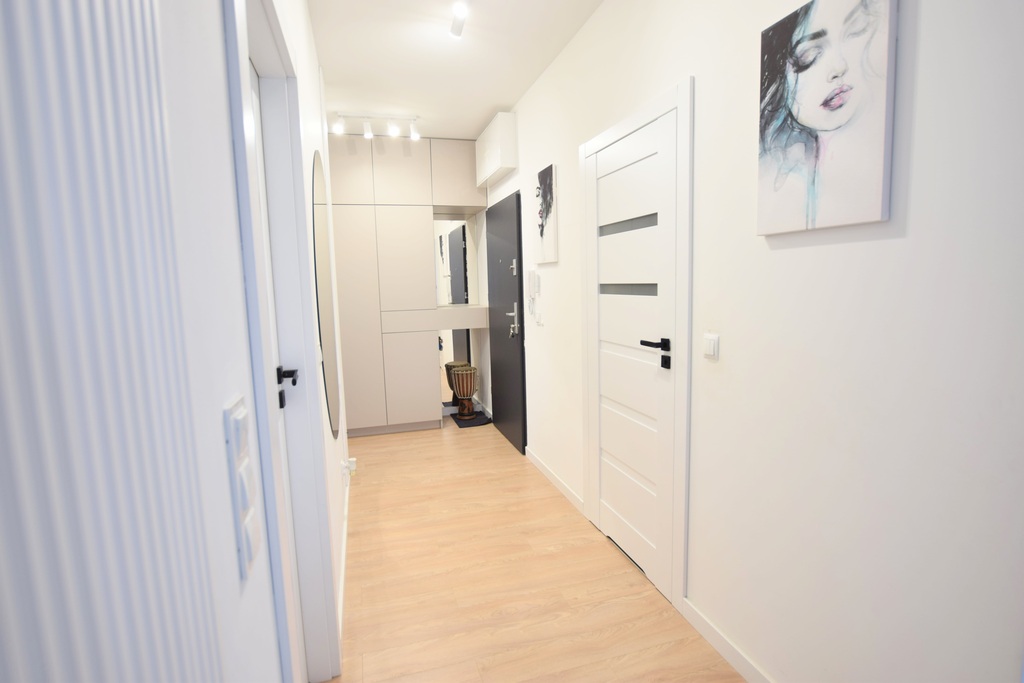 Korytarz przestronny, jasny z szafą w indywidualnym projekcie.