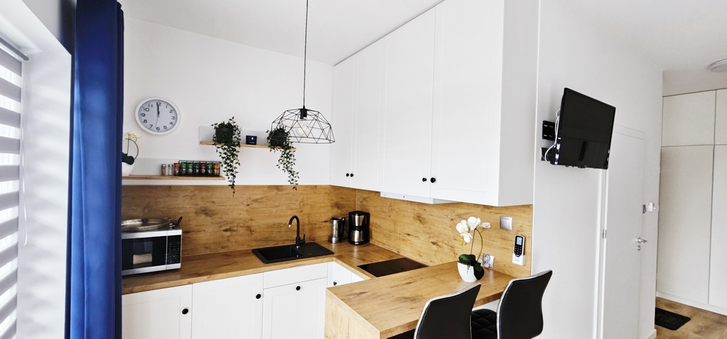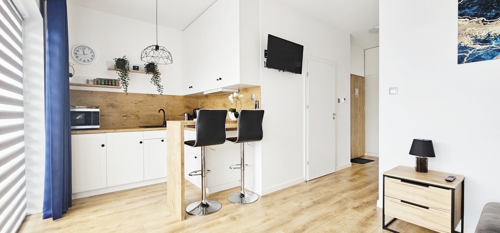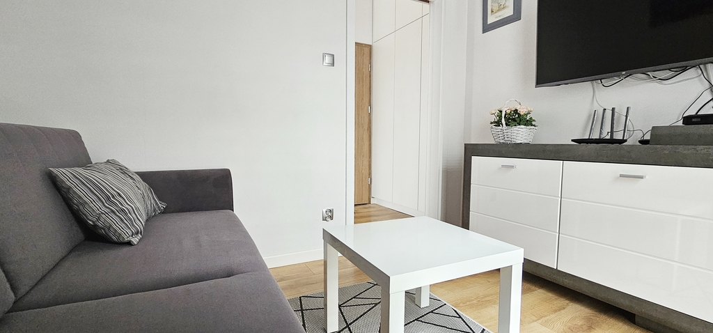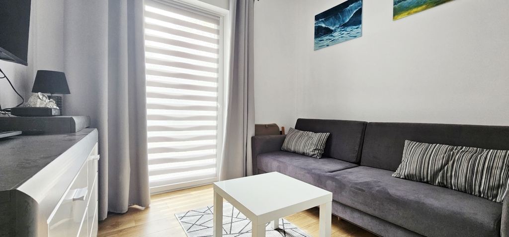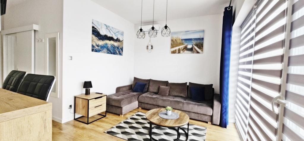 Apartament wykończony materiałami wysokiej jakości. W cenie może pozostać wyposażenie widoczne na zdjęciach, apartament przystosowany dla 4 osób, 2 rozkładane sofy z powierzchnią spania Na powierzchnię 33,4m2 składa się :