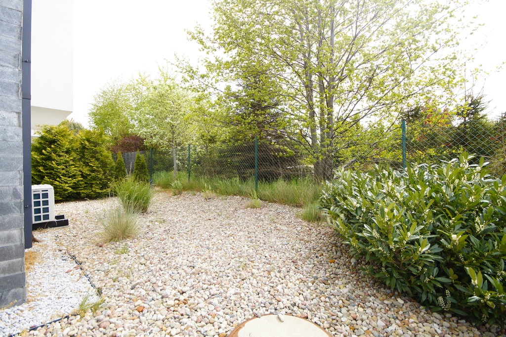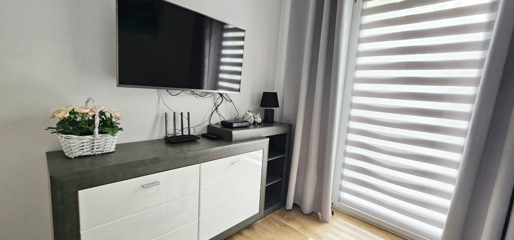 Z salonu wyjście na taras 15,52m2 i kamienny ogródek. W mieszkaniu ogrzewanie podłogowe zasilane z lokalnej kotłowni oraz klimatyzacja. Dostępne internet oraz TV przez światłowód.