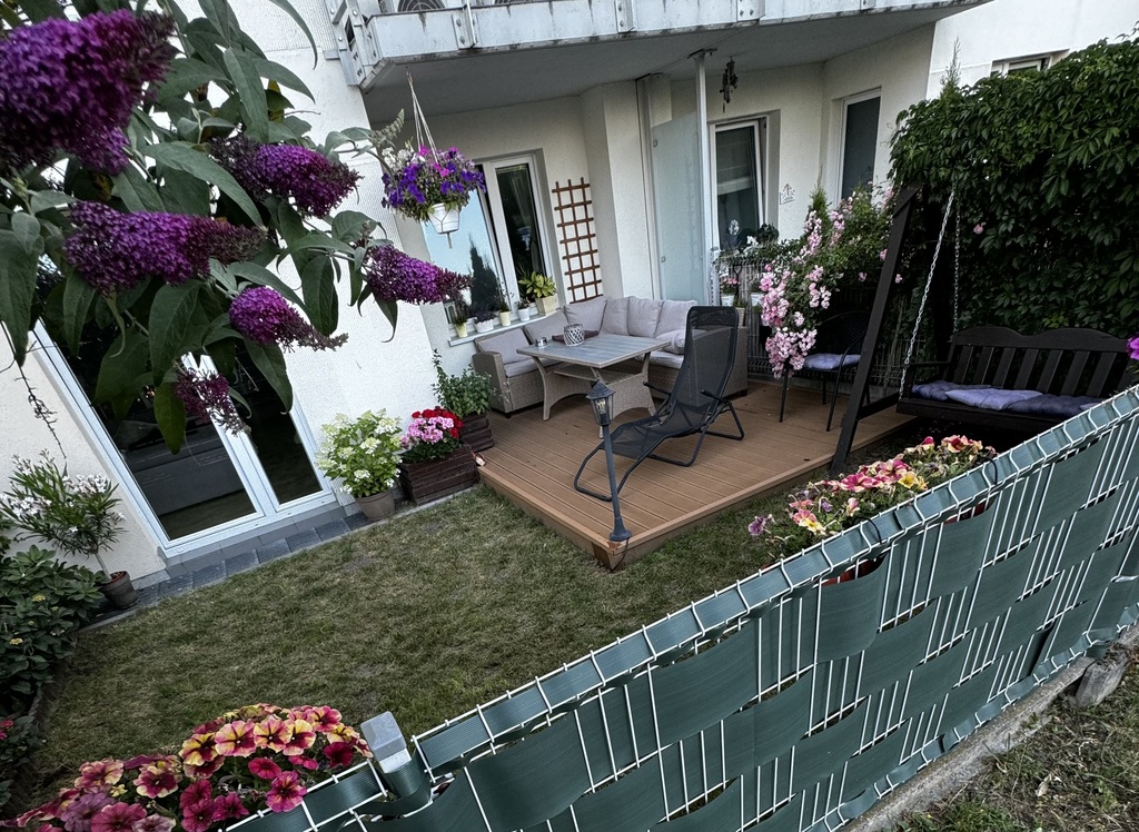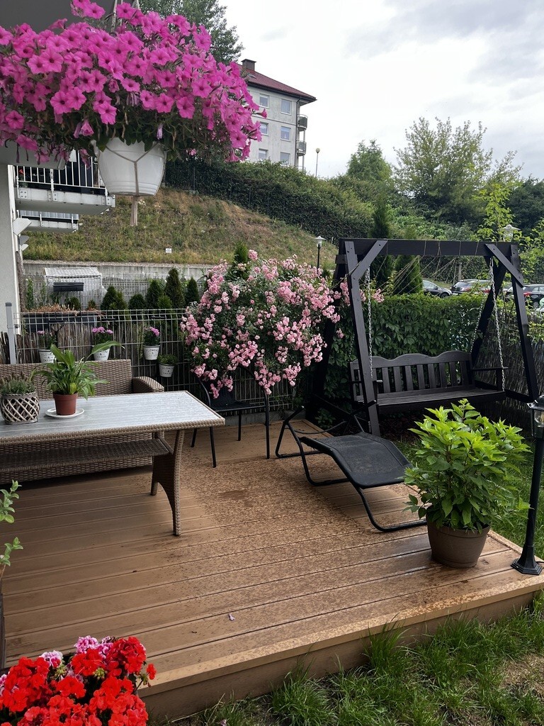 Atutem mieszkania jest nieduży, ale ładnie zagospodarowany ogródek,