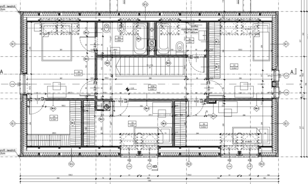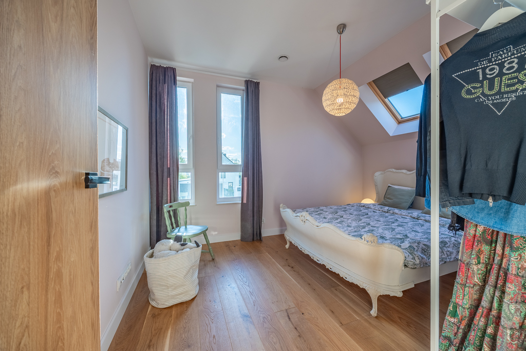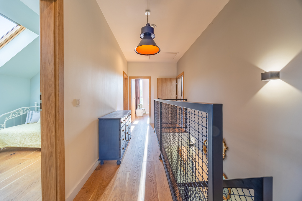 piętro: hall 9,28m2,4 sypialnie, w tym 1 z własną łazienką 3,8m2 oraz garderobą: 6,10m2, łazienka 3,8m2