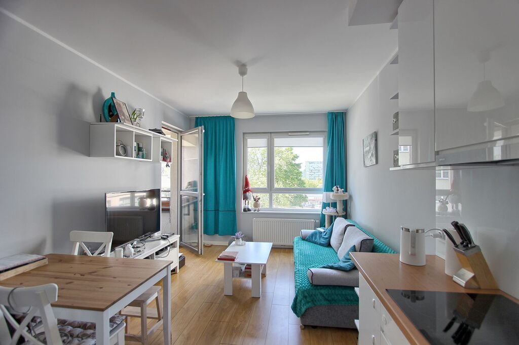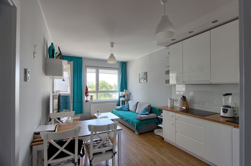 Mieszkanie jest gustownie urządzone, umeblowane i wyposażone w niezbędne sprzęty AGD.