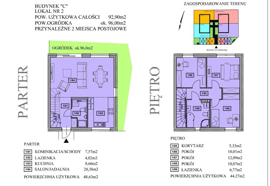 - wydzielone dwa miejsca postojowe,