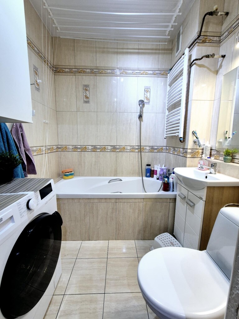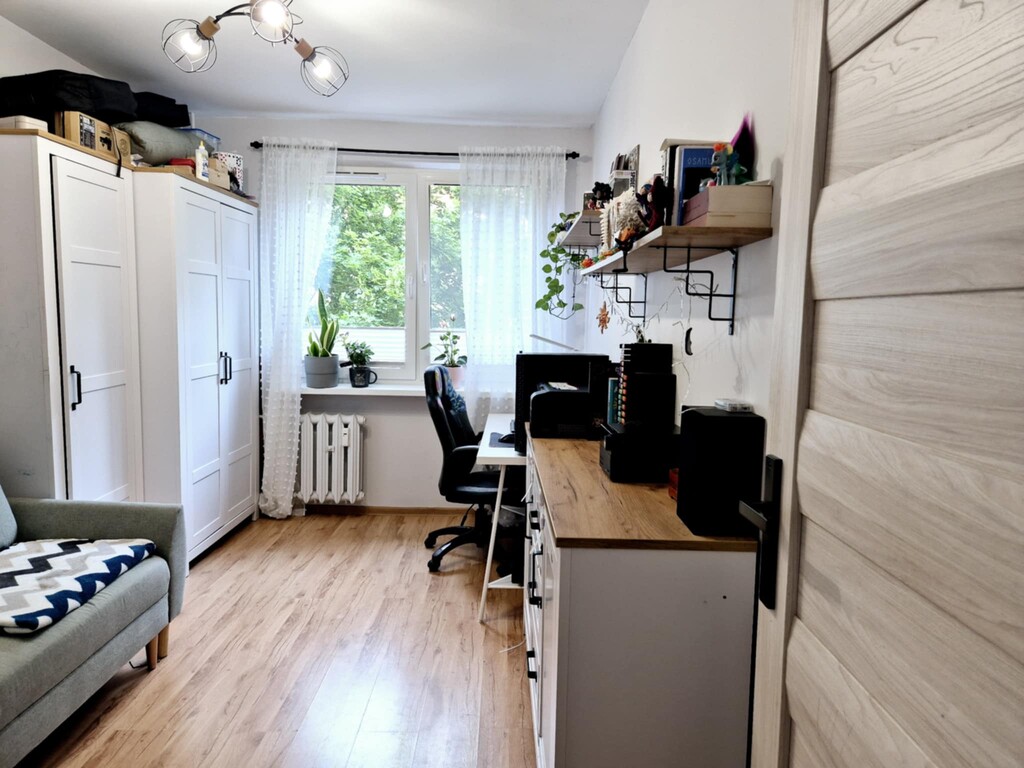 Mieszkanie jest jasne, ciepłe. Na podłogach w pokojach położono panele, ściany są wygładzone, pomalowane częściowo tapetowane. W kuchni oraz przedpokoju – terakota. Kuchnia wykończona gładzią i pasem glazury, łazienka – w klasycznym wykończeniu glazurą i terakotą.
