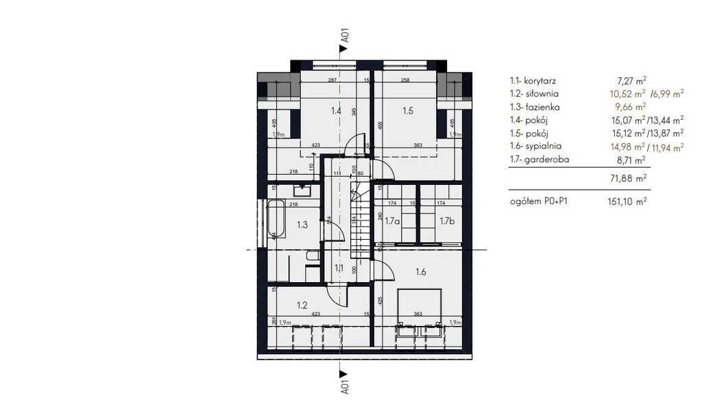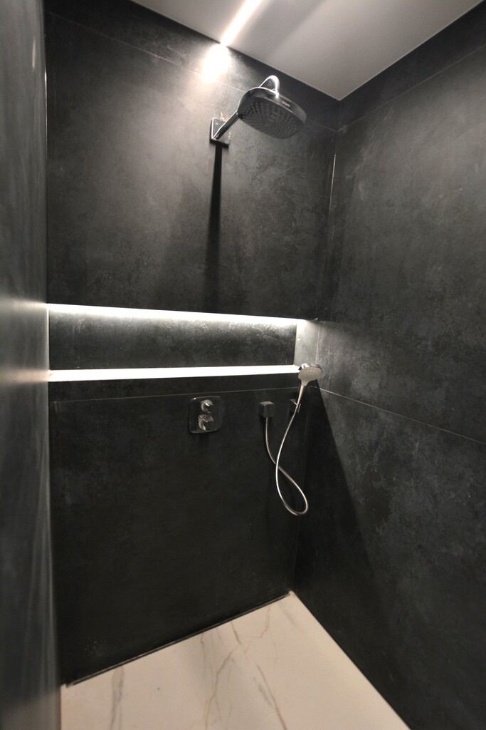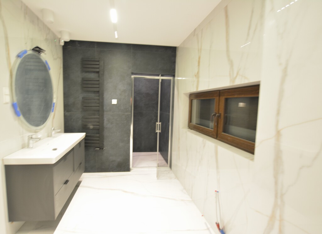 - łazienka o powierzchni 9,66m² z oknem, kabiną natryskową, bidetem