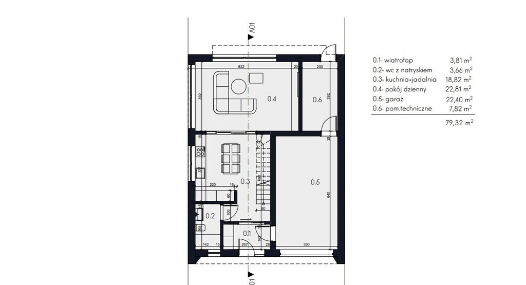 - garaż i pomieszczenie gospodarcze 22,4m² plus 7,82m²