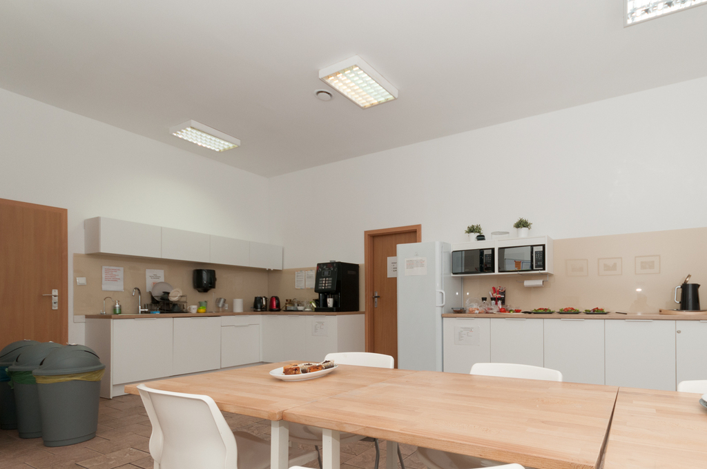 NA PIĘTRZE NAD MAGAZYNEM znajduje się część socjalno-biurowa mogąca również pełnić funkcję handlową, wystawienniczą. Na cześć to ok. 700mkw, podzielona na sale konferencyjne, gabinety, biura, socjal, sanitariaty itp. Tu również istnieje możliwość zamknięcia jednej części tak by stworzyć osobny moduł połowy magazynu z połową biur. Do obiektu prowadzą dwie klatki schodowe dzięki czemu biura mogą funkcjonować niezależnie.